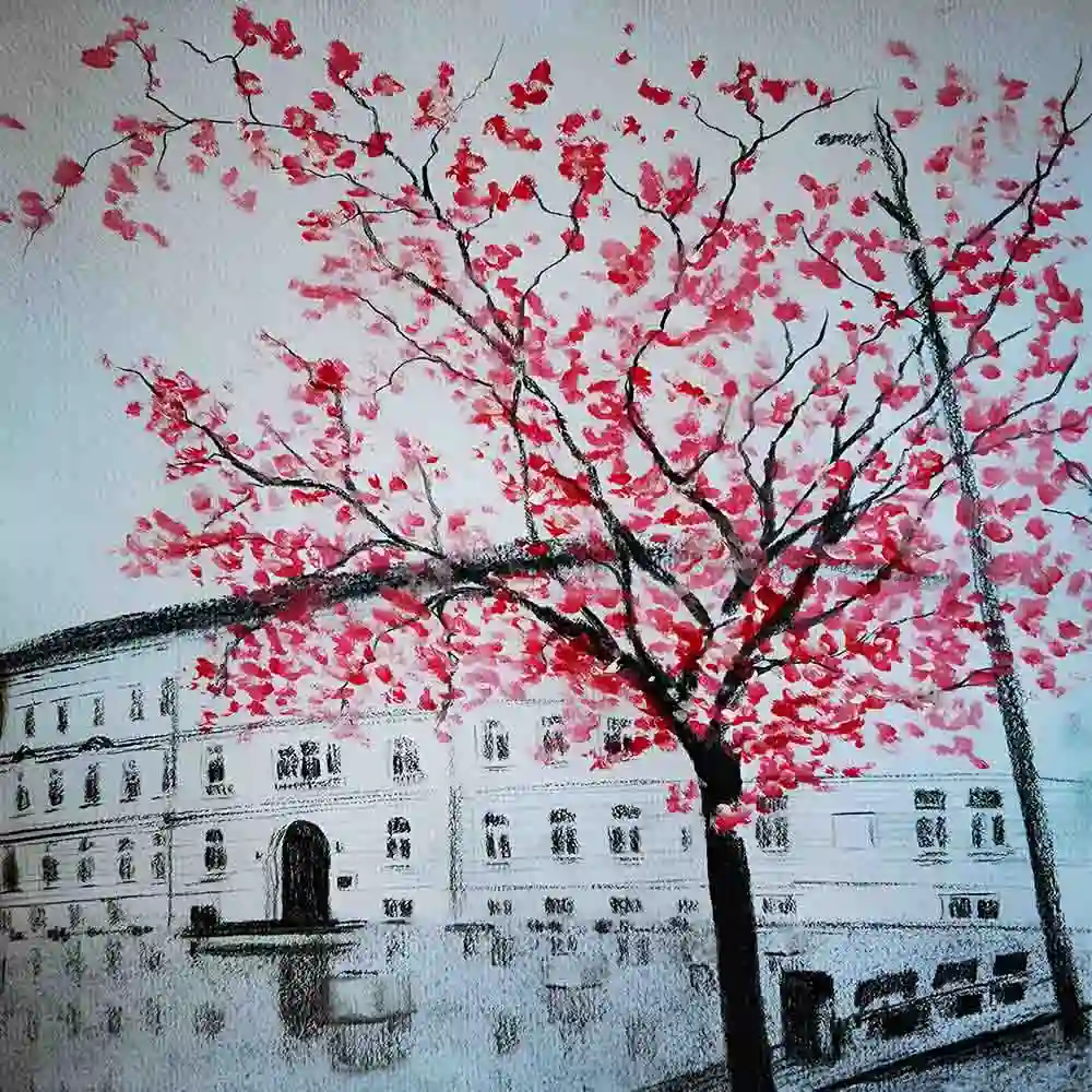 Name: Cherry Blossom Tree City Sketch
