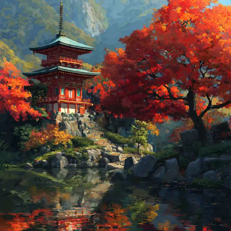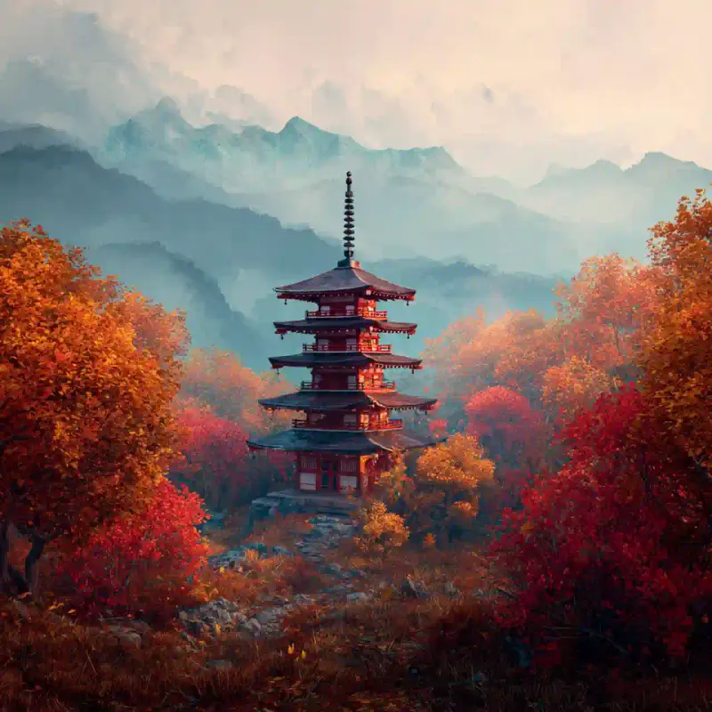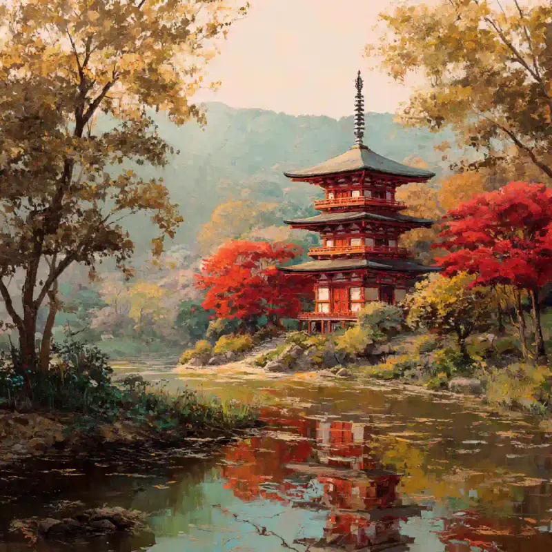 Name: Peaceful Japanese Pagoda Autumn Landscape