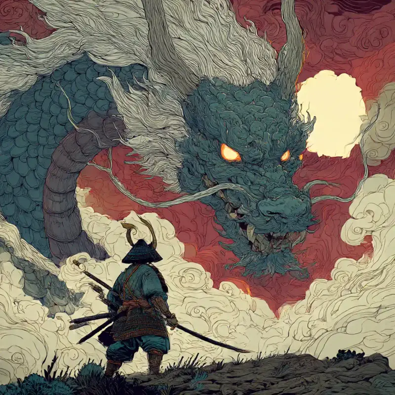 Name: Samurai Facing Mighty Dragon SpiritArtist Name: Jiří EliášFormat: WEBPQuantity: 5Resolution: 1000*1000