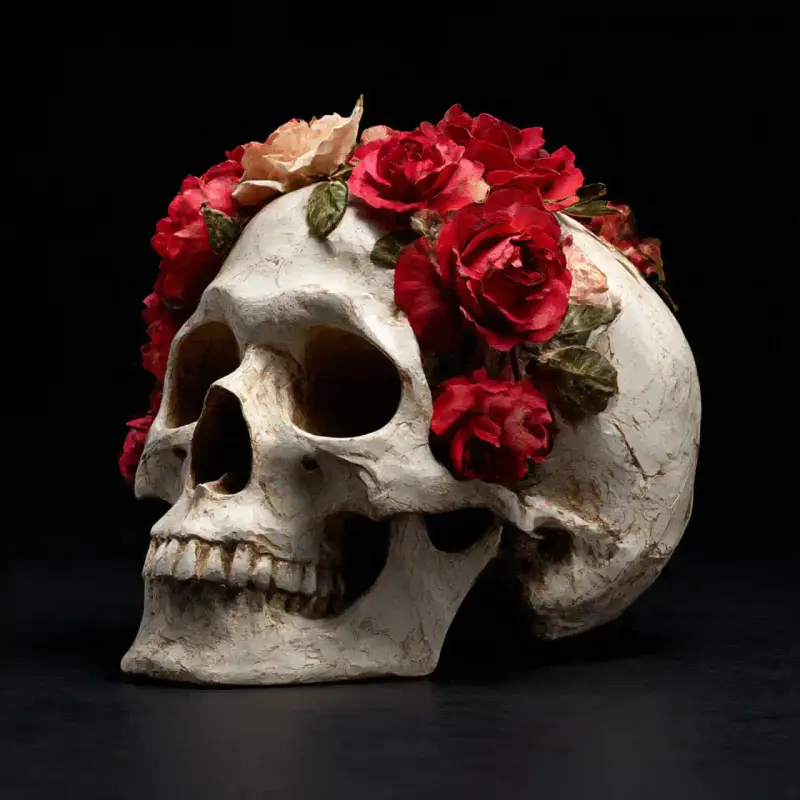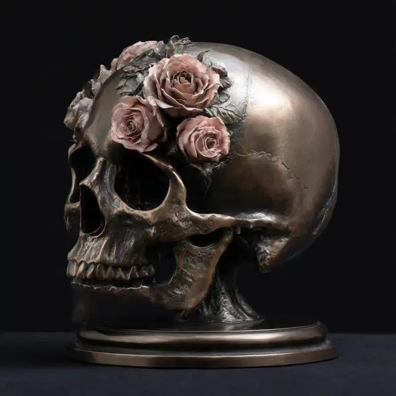 Name: Skull with Roses Artistic Sculpture