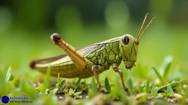 Vibrant Green and Brown Grasshopper Macro Close-Up Photo